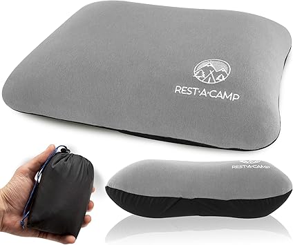 It is an inflatable pillow which packs down to the size of a small football to facilitate packing.