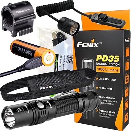 Amazon Com Fenix Pd35 Tac 1000 Lumen Cree Led Tactical Flashlight With Usb Rechargeable Weapon Mount Kit With Edisonbright Usb Charging Cable Bundle Sports Outdoors